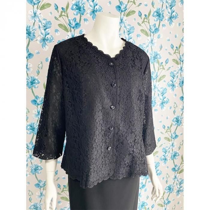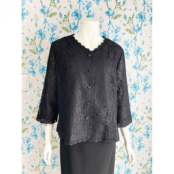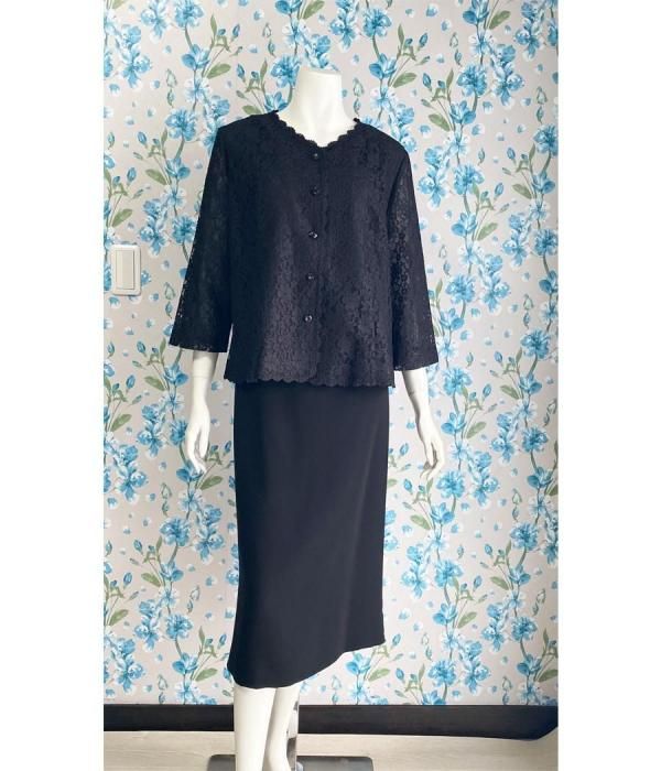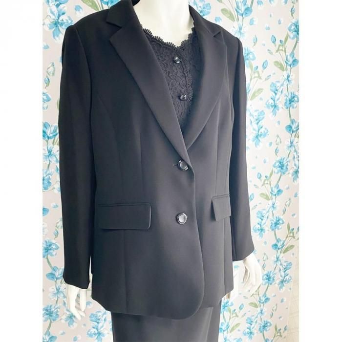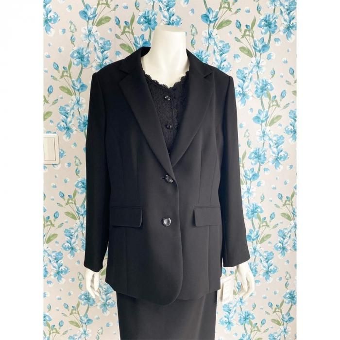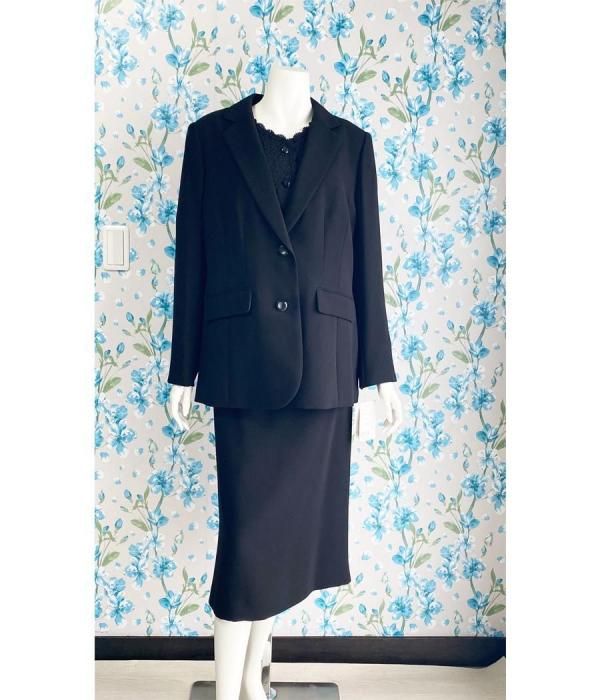 スタンダードなジャケットにスカート、レースを使ったブラウスと、フォーマルなお席以外にも使いやすいセットになります。